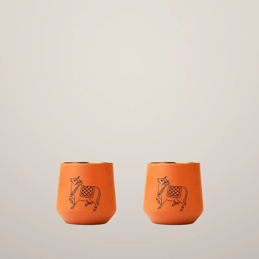 Pichwai Art Inspired Bull Motif Terracotta Glass - Set 0f 2 Glasses