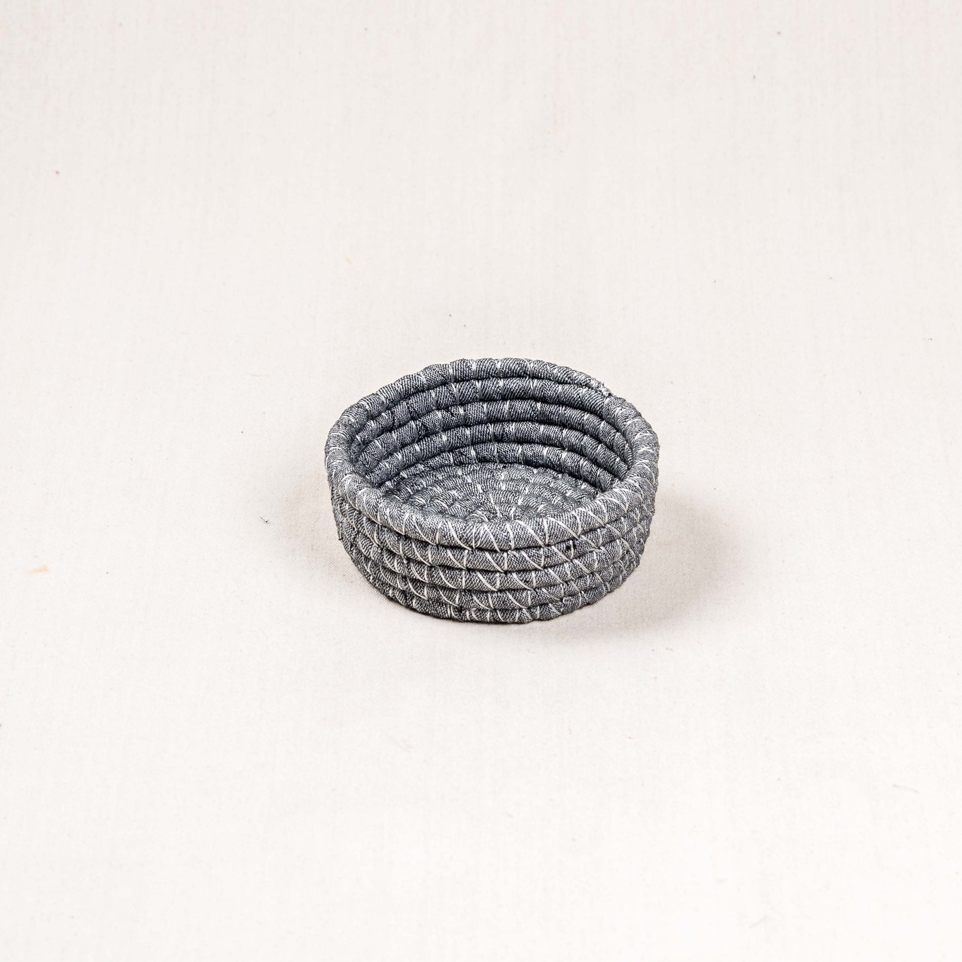 Elevate your home organization with this elegant Set of 3 Handwoven Rope Baskets in a versatile charcoal grey shade. Made from up-cycled waste fabric ropes and tightly coiled together, these baskets are sturdy and sustainable.